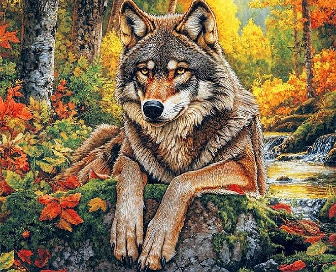 The wolf in the autumn forest
